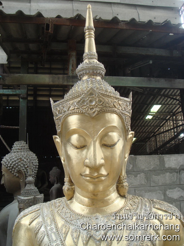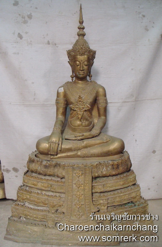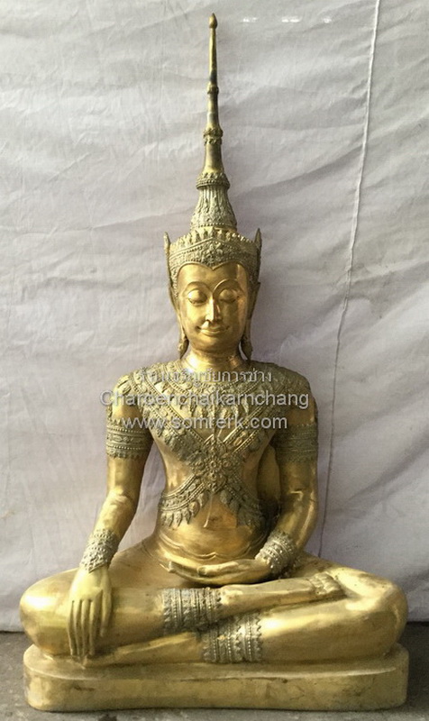 องค์ที่ 6A FACTORSY79 หลวงพ่อวัดหน้าพระเมรุ 30 นิ้ ฐานเตี้ย ทองเหลือง พ่นสีทอง พิมพ์ จช. H 135 W 83 D 45 cm