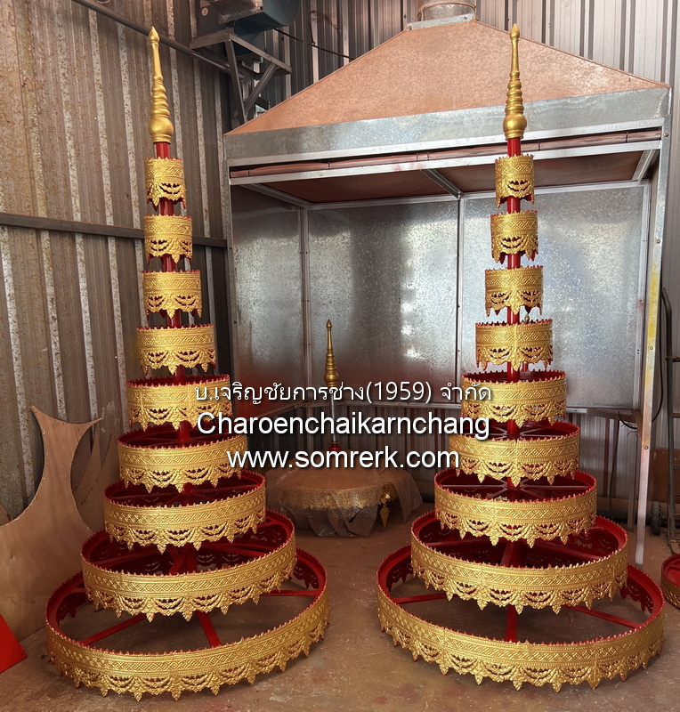 อลูมิเนียม พ่นสีทอง ล่องสีแดง