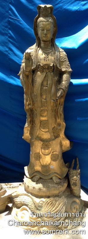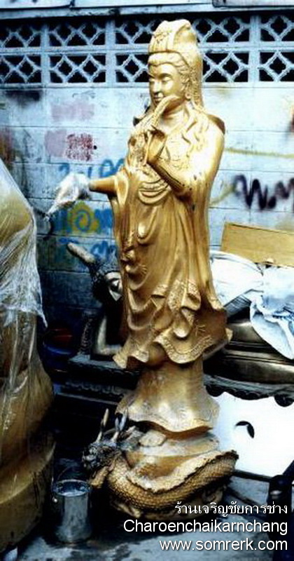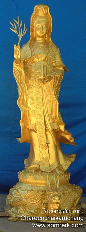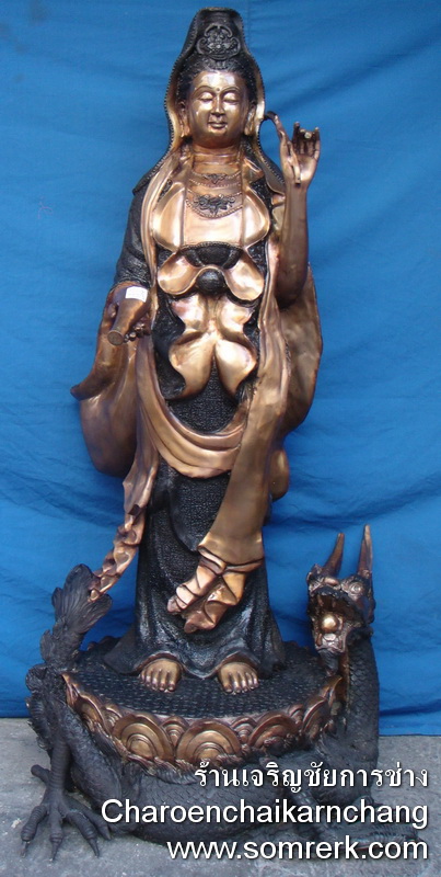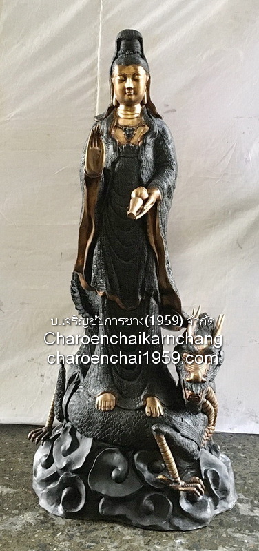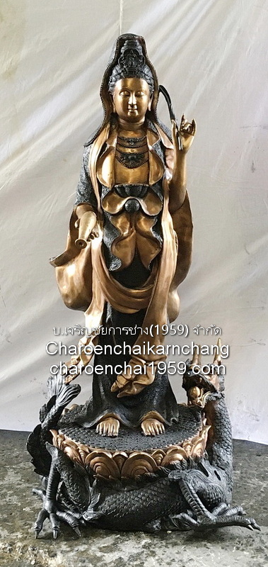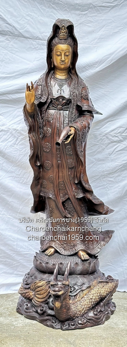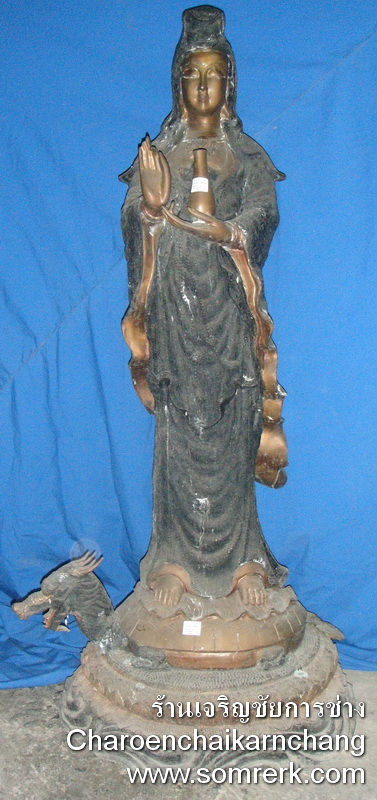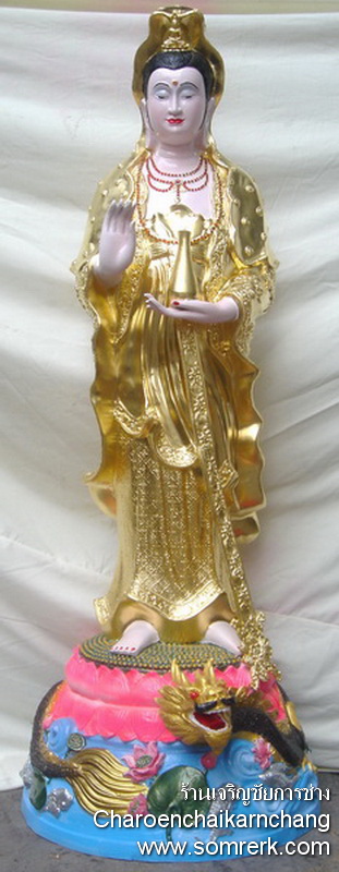 ยืนมังกรหน้า ถือแจกันตั้ง