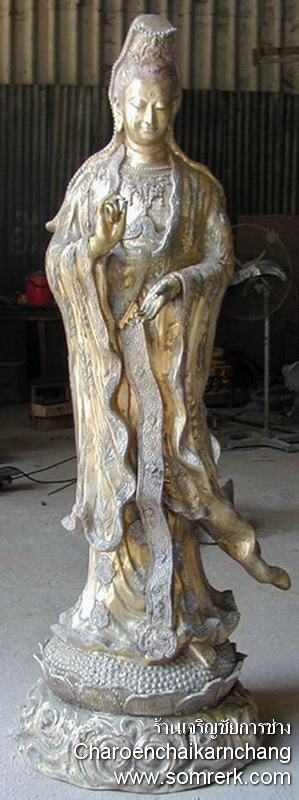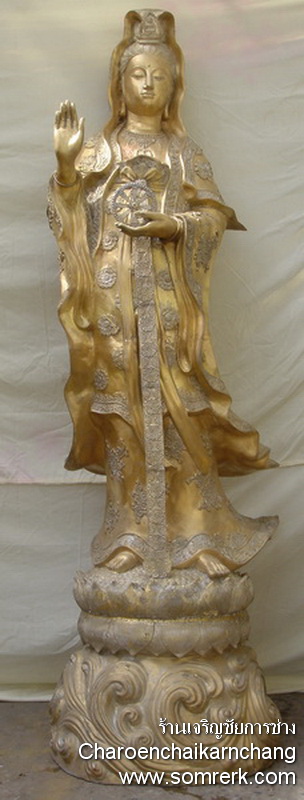 ยืนผ้าพริ้ว ฐานปลา-ดอกบัว