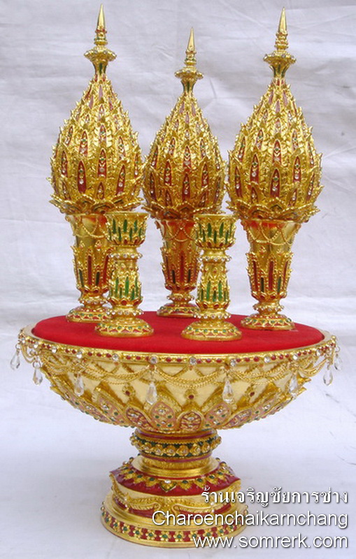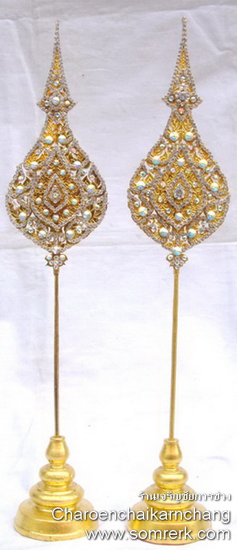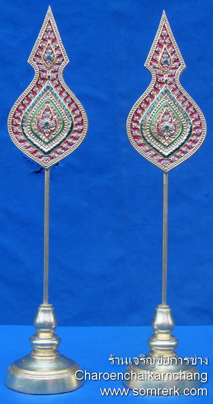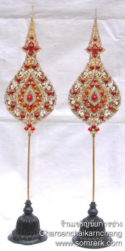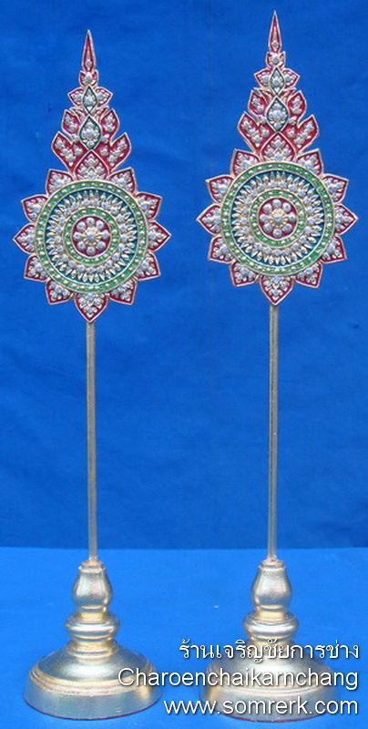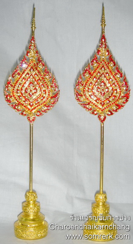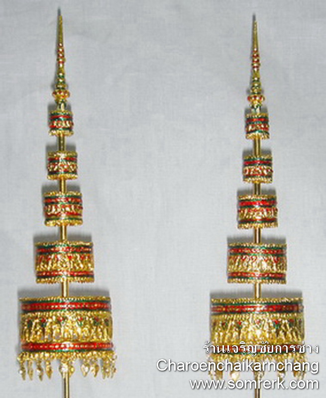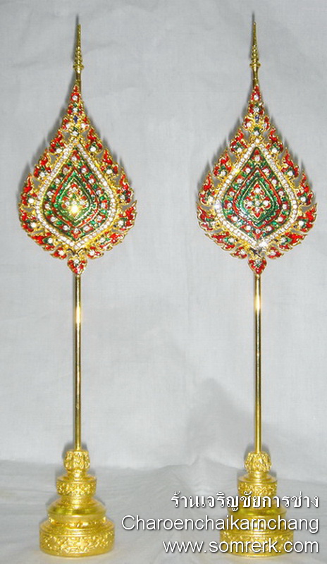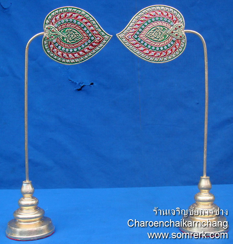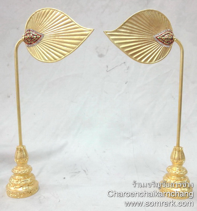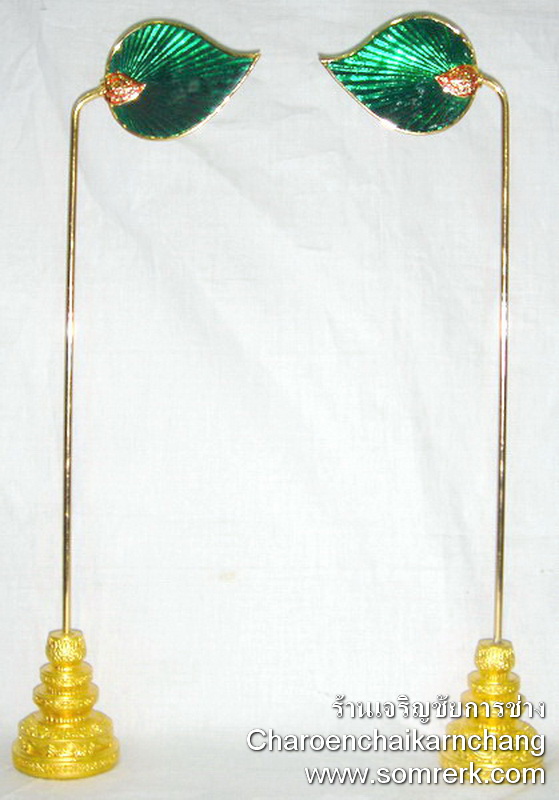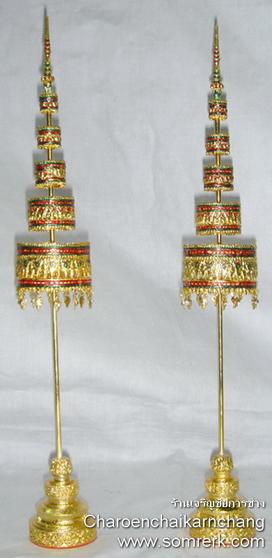 รูปที่ 9 ฉัตรทองเหลือง ตีมือ ปิดทองคำ ลงยา มีหลายขนาด ดังนี้ วงล่าง 1.5 นิ้ว สูง 32 ซม Code12VBKQZXRX ต่อ คู่ วงล่าง 2 นิ้ว สูง 41 ซม Code12TRKRZXMR ต่อ คู่ วงล่าง 3.5 นิ้ว สูง 64 ซม Code12TGJWQZXVM ต่อ ค