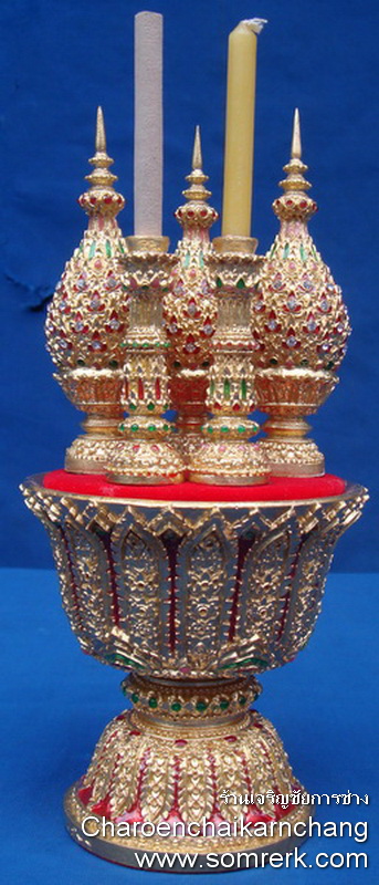 รูปที่ 9 ฉัตรทองเหลือง ตีมือ ปิดทองคำ ลงยา มีหลายขนาด ดังนี้ วงล่าง 1.5 นิ้ว สูง 32 ซม Code12VBKQZXRX ต่อ คู่ วงล่าง 2 นิ้ว สูง 41 ซม Code12TRKRZXMR ต่อ คู่ วงล่าง 3.5 นิ้ว สูง 64 ซม Code12TGJWQZXVM ต่อ คู่