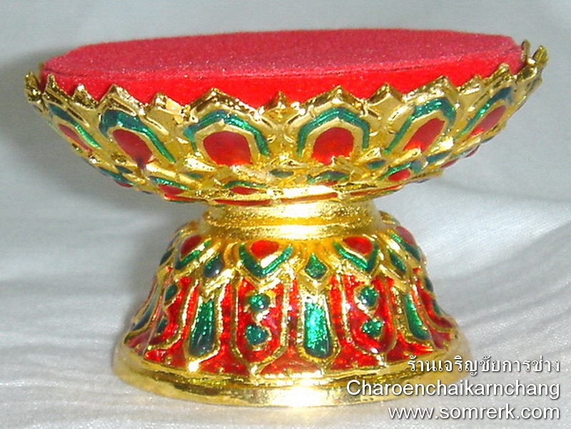 รูปที่ 19 พานทองเหลือง ตีลาย ปิดทองคำ 100% ลงยง