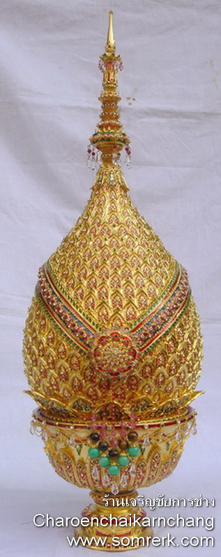 รูปที่ 15 ทองน้อย งานไฟเบอร ์ ปิดทองคำ ลงยา ประดับด้วยกระทงผ้า