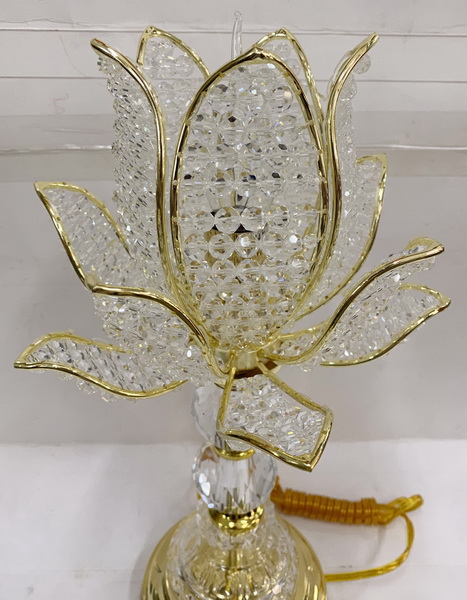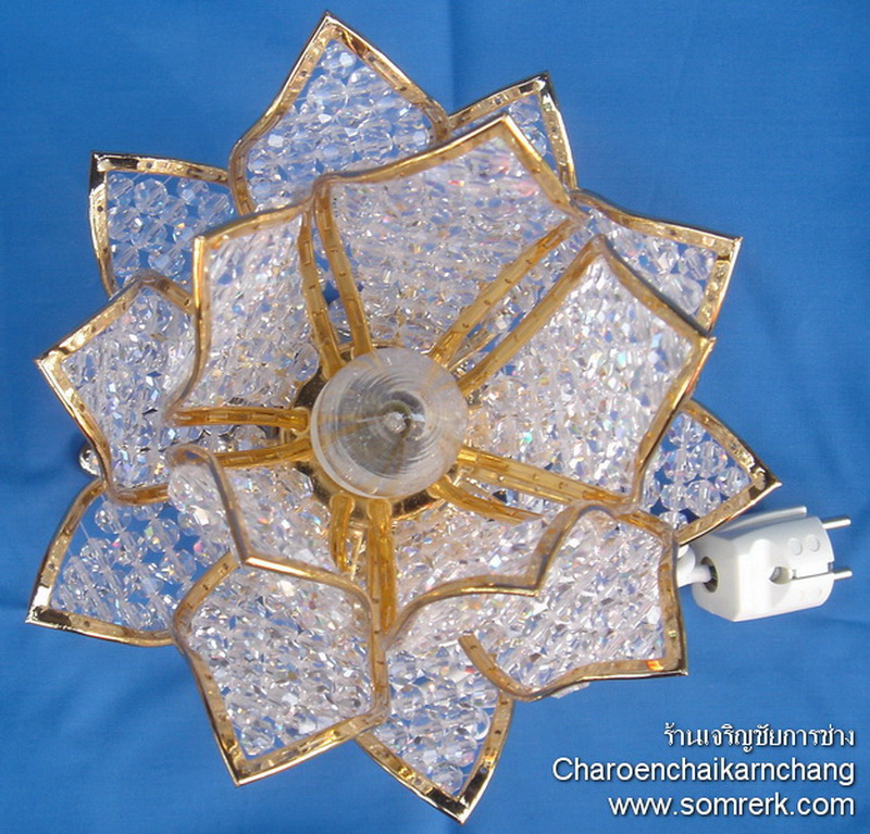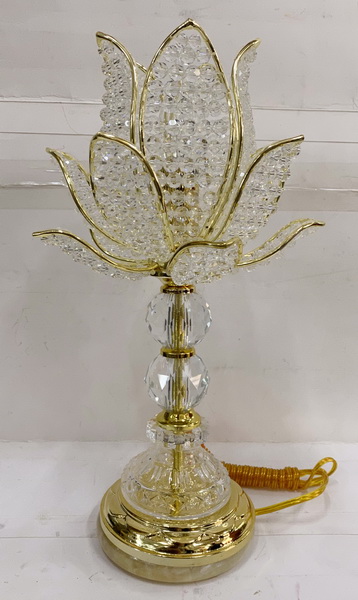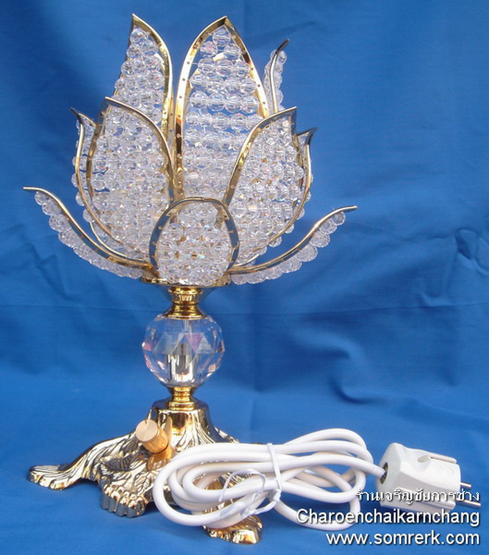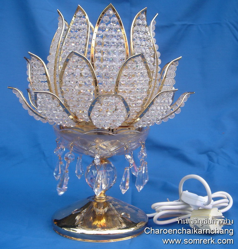 รูปที่ 10 โคมไฟฟ้า ดอกบัว คริสตรัล เล็ก สูงประมาณ 28 ซม กว้าง 19 ซม สำหรับบูชาหน้าพระ หรือ บนโต๊ะหมู่บูชา (หยุดการผลิตแล้ว)