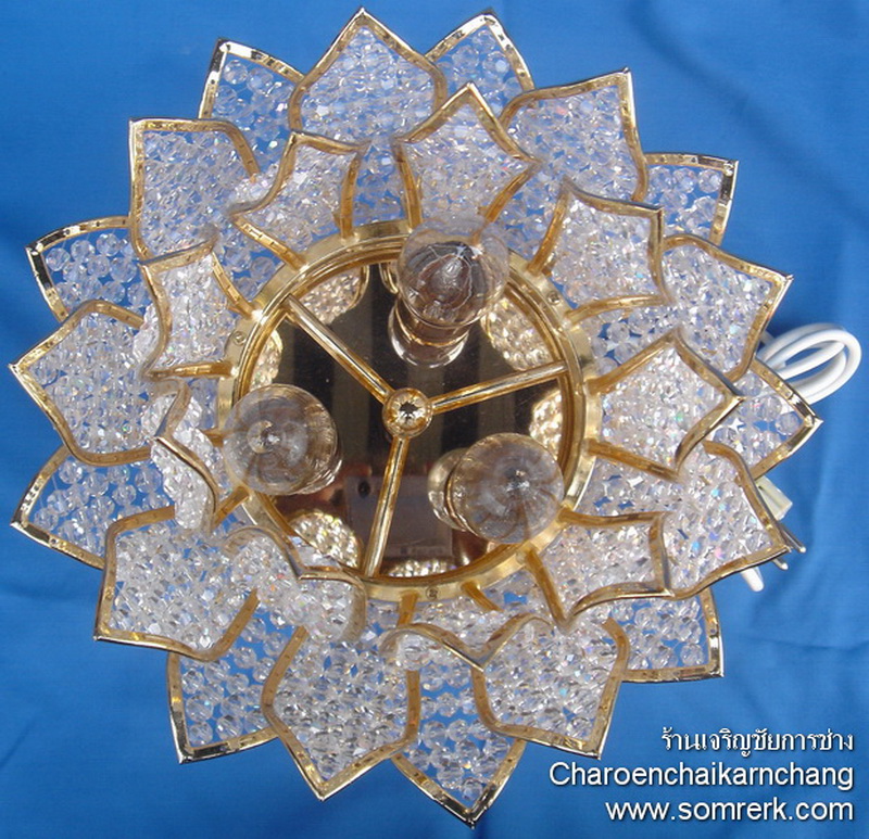 รูปที่ 12 โคมไฟฟ้า ดอกบัว คริสตรัล ใหญ่ สูงประมาณ 33 ซม กว้าง 29 ซม สำหรับบูชาหน้าพระ หรือ บนโต๊ะหมู่บูชา (หยุดการผลิตแล้ว)