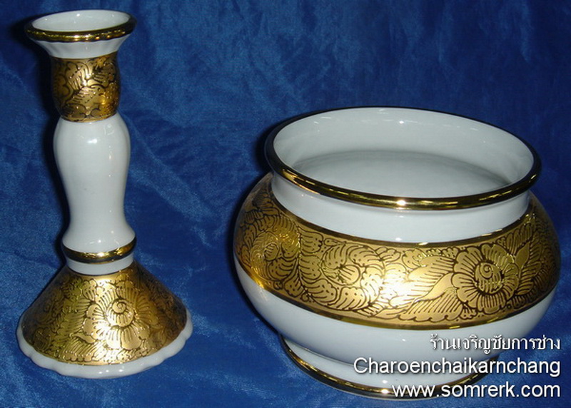 ตัวอย่างที่ 13 ตัวอย่าง ลาย ชุดบูชา จะมี กระถางธูป แจกัน เชิงเทียน