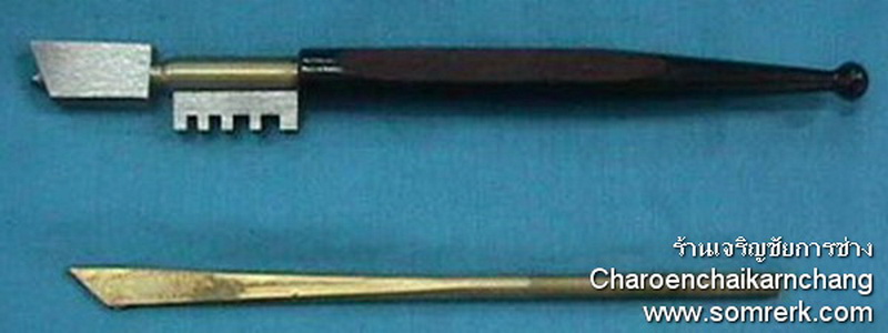 รูปที่ 2 ที่ตัดกระจก รูปด้านบน คือ ที่ตัดกระจักด้ามไม้ รูปด้านล่าง คือ ที่ตัดกระจกด้ามทองเหลือง