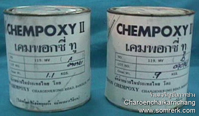 รูปที่ 3 กาวติดกระจกสี ยี่ห้อ Chempoxy มี 3 ขนาด เล็ก กลาง ใหญ่