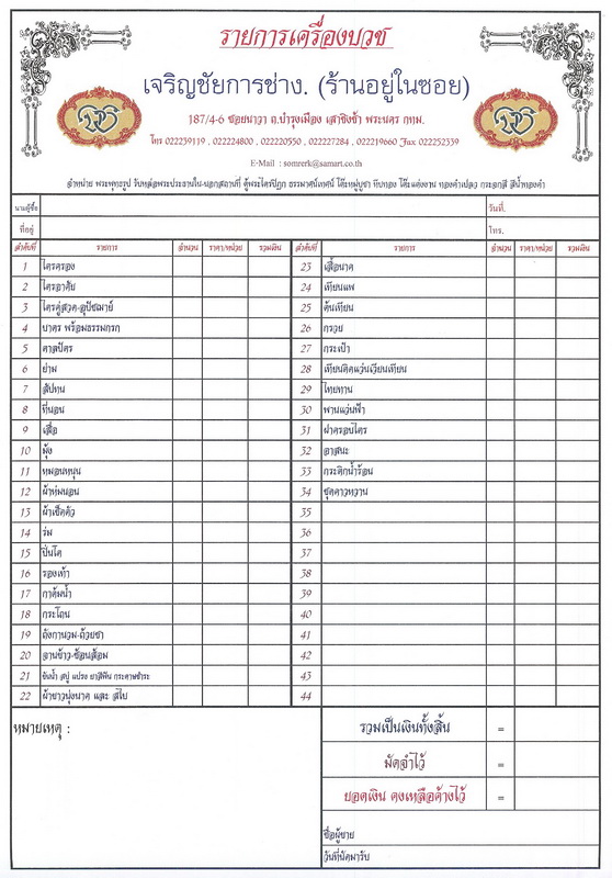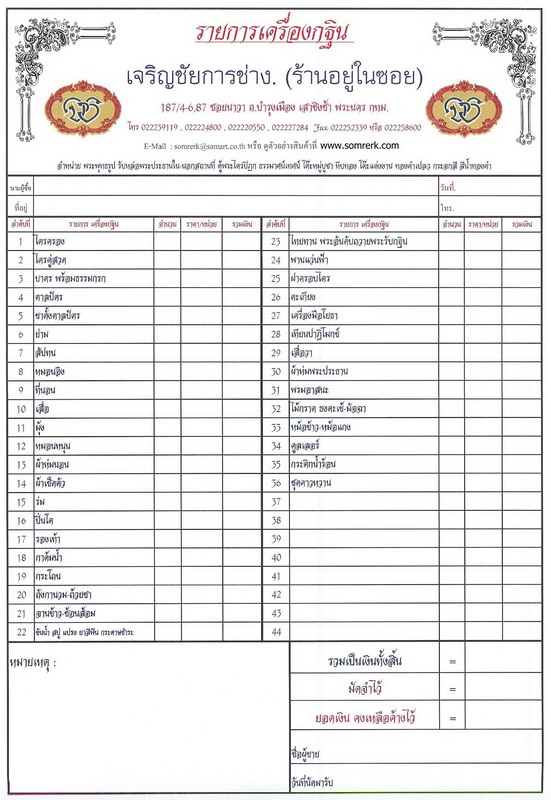 ใบรายการเครื่องบวช กดที่รูปภาพ แล้ว Print ได้เลยครับ