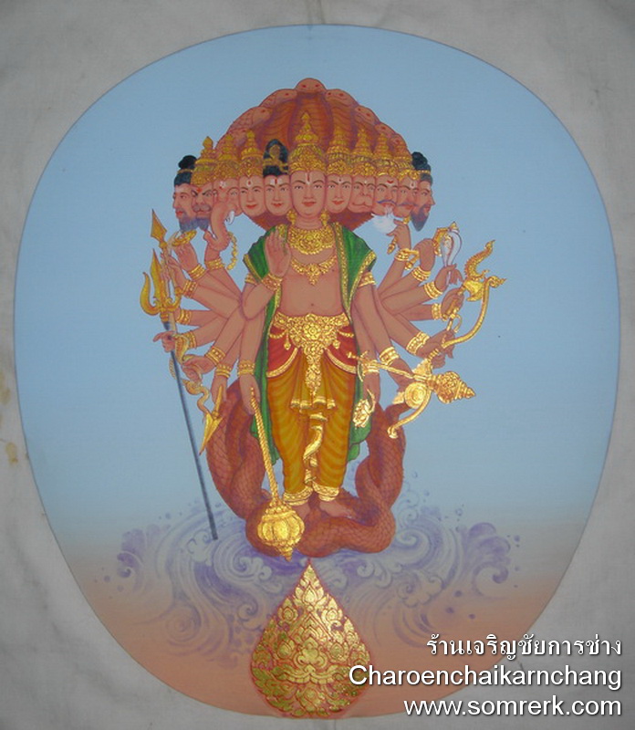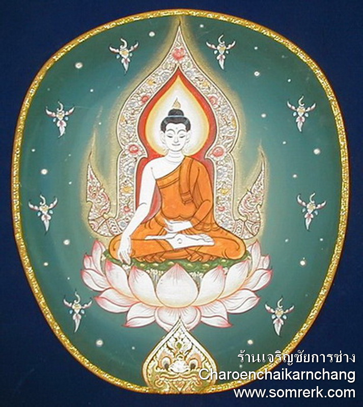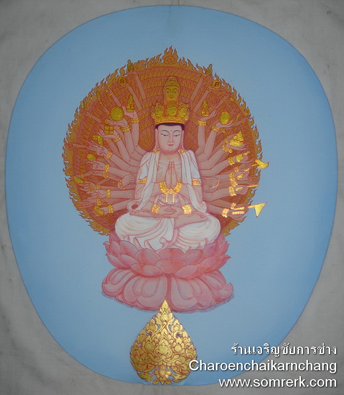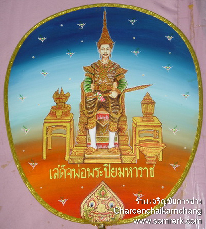 ตัวอย่าง ตาลปัตร แบบ Paint บนผ้าไหม ตัวอย่าง ที่ 9