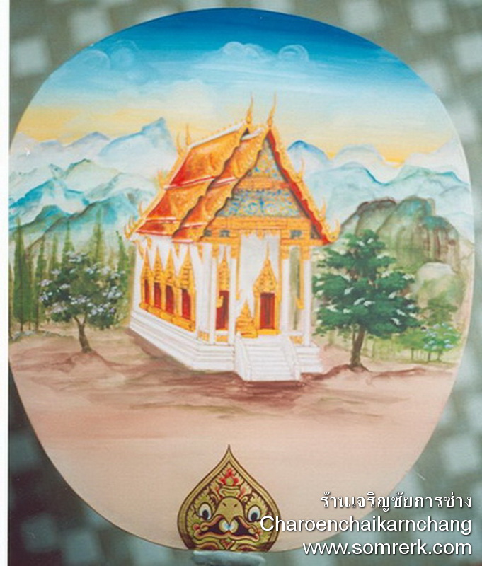 ตัวอย่าง ตาลปัตร แบบ Paint บนผ้าไหม ตัวอย่าง ที่ 6