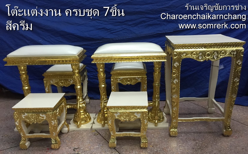 โต๊ะแต่งงาน สีครีบ ครบชุด 7 ชิ้น รหัส บม