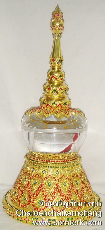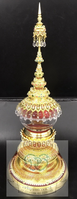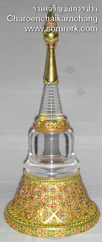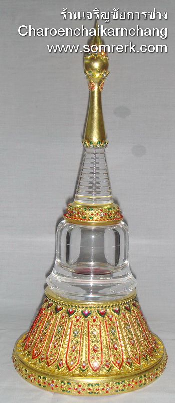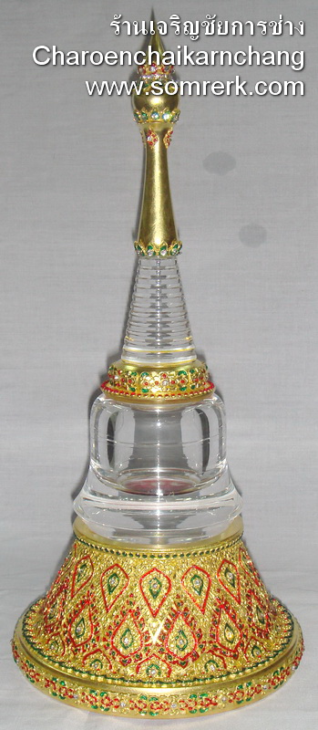 แบบที่ 42 WAT1PAOP62 เจดีย์ผอบ เบอร์ 6ทับ2 ปิดทองคำ ลงยา ติดCrystal |