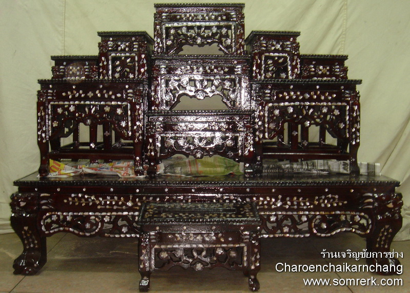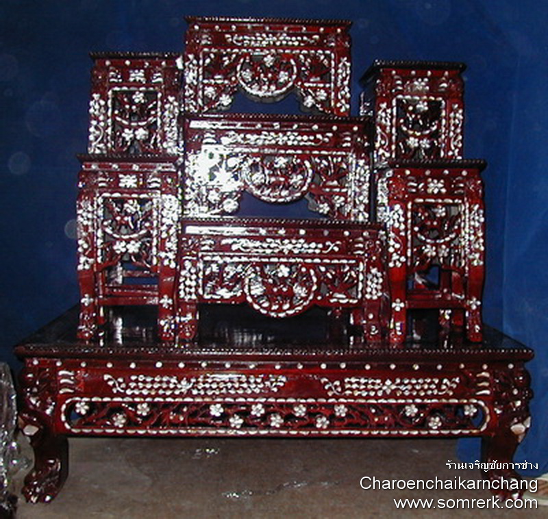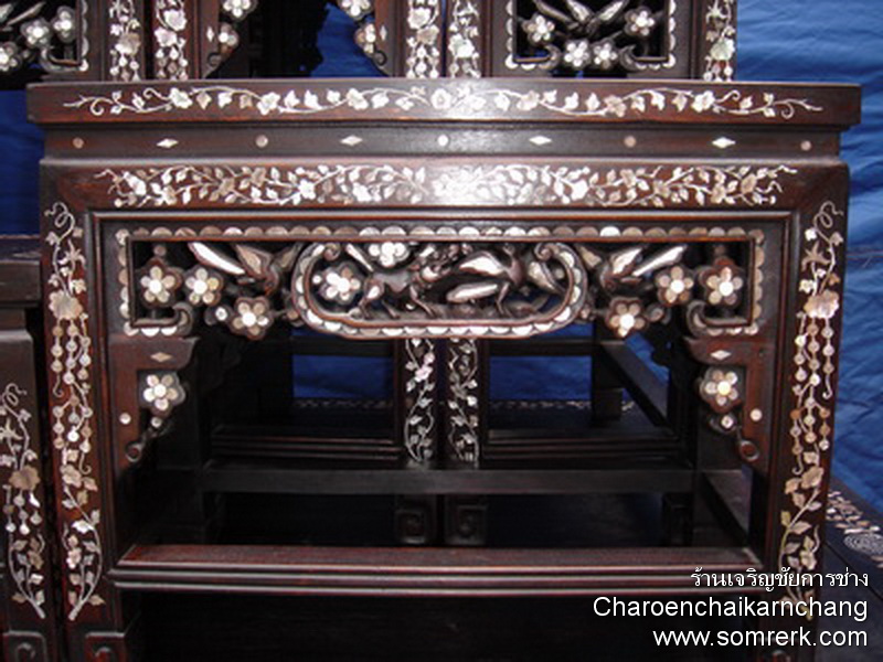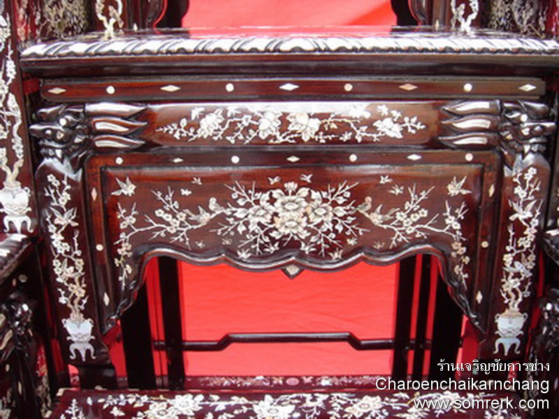 ไม้ประดู่ มุกไฟล้วน ลายจีน งานพิเศษ สั่งทำ