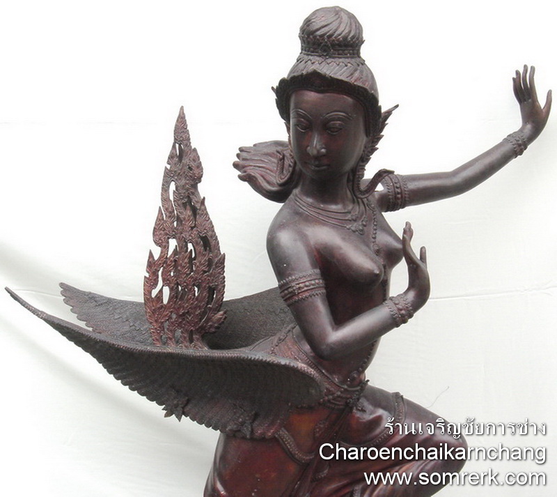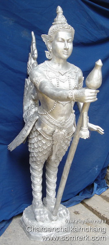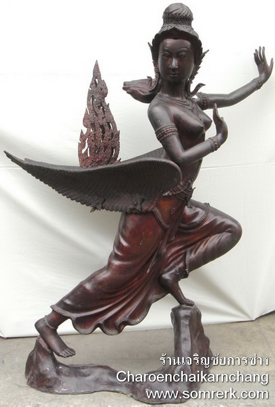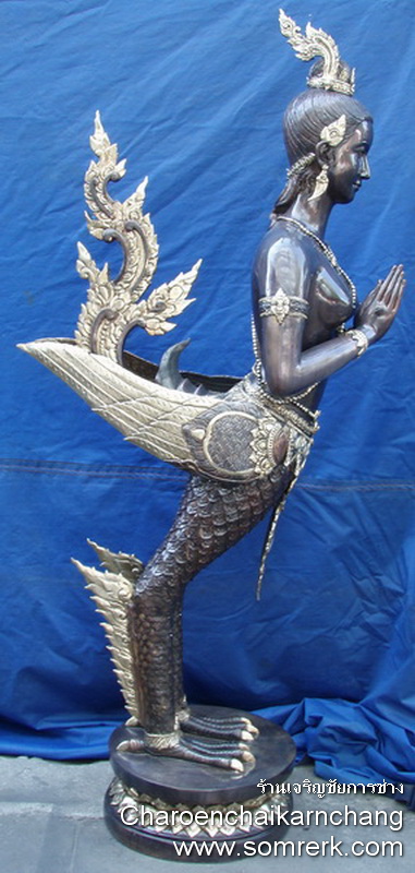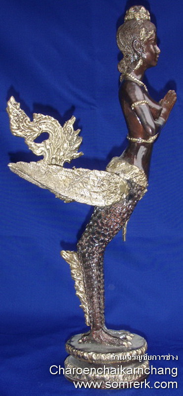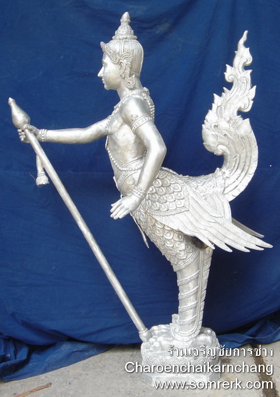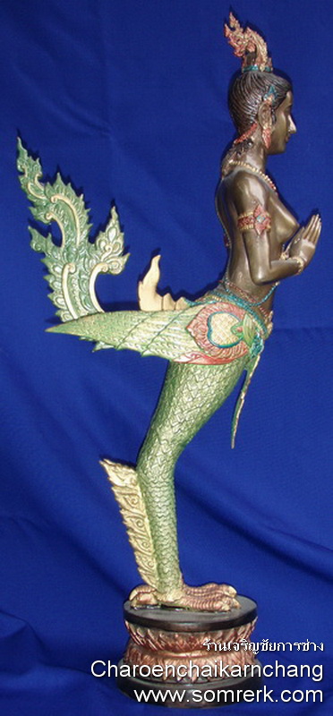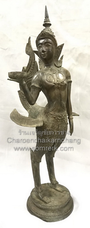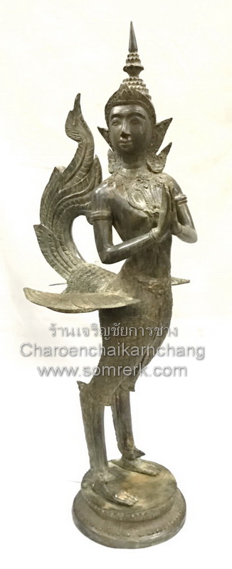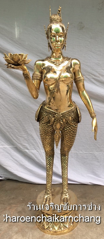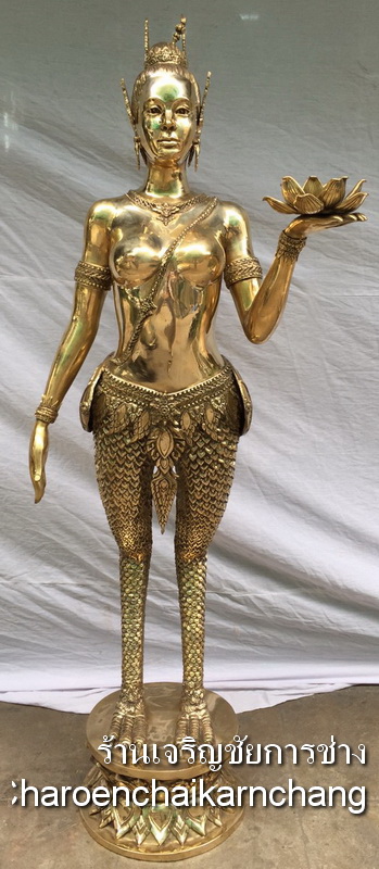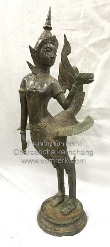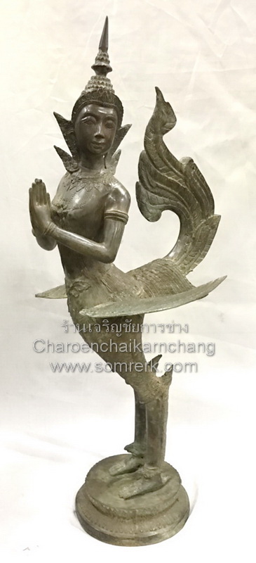 กินรี สูง 31 นิ้ว ถือดอกบัว ทำสีเก่า