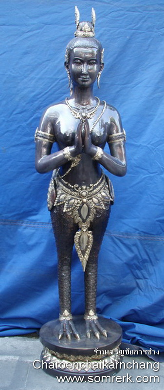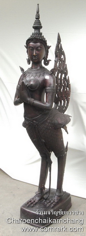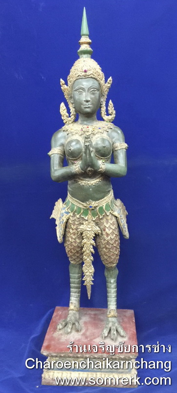 กินรี สูง 31 นิ้ว พนมมือ ทำสีเก่า