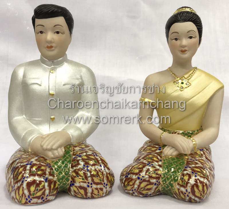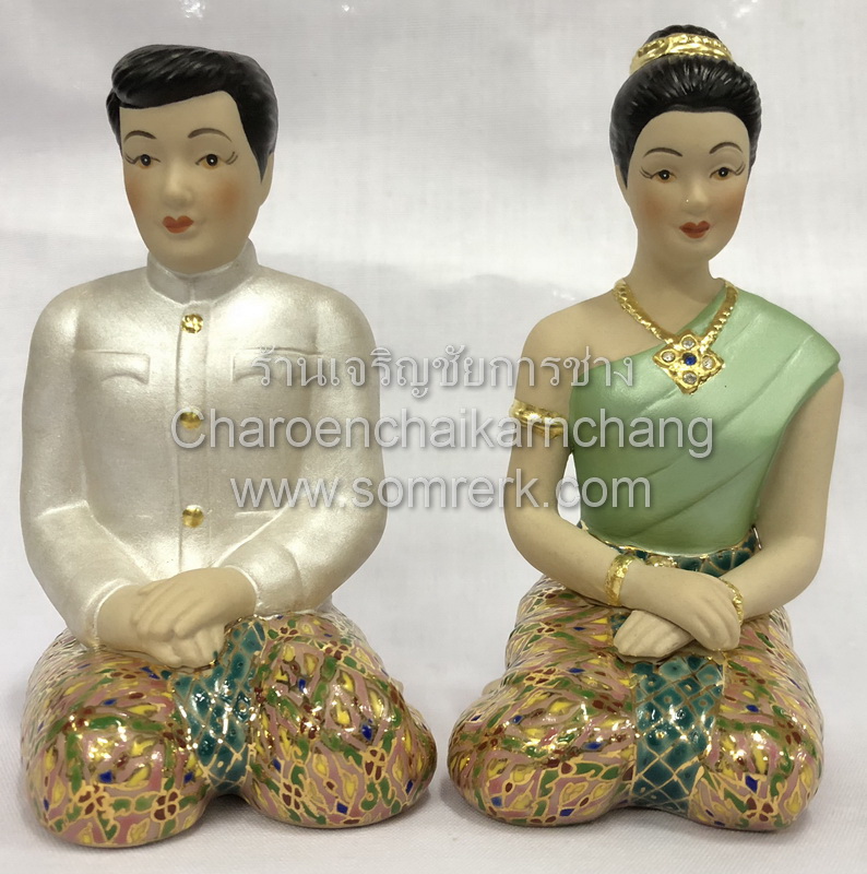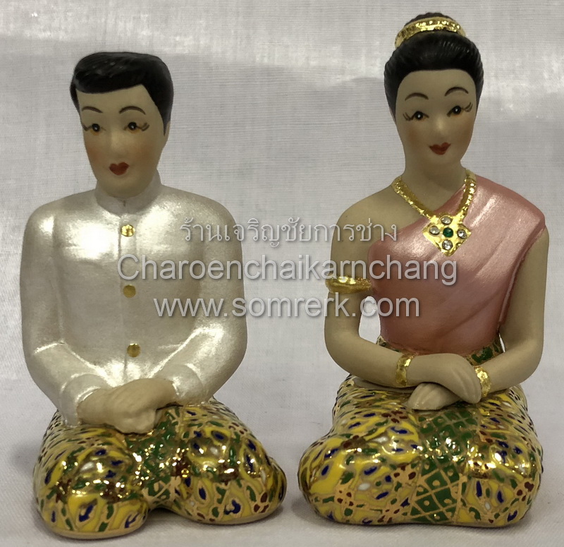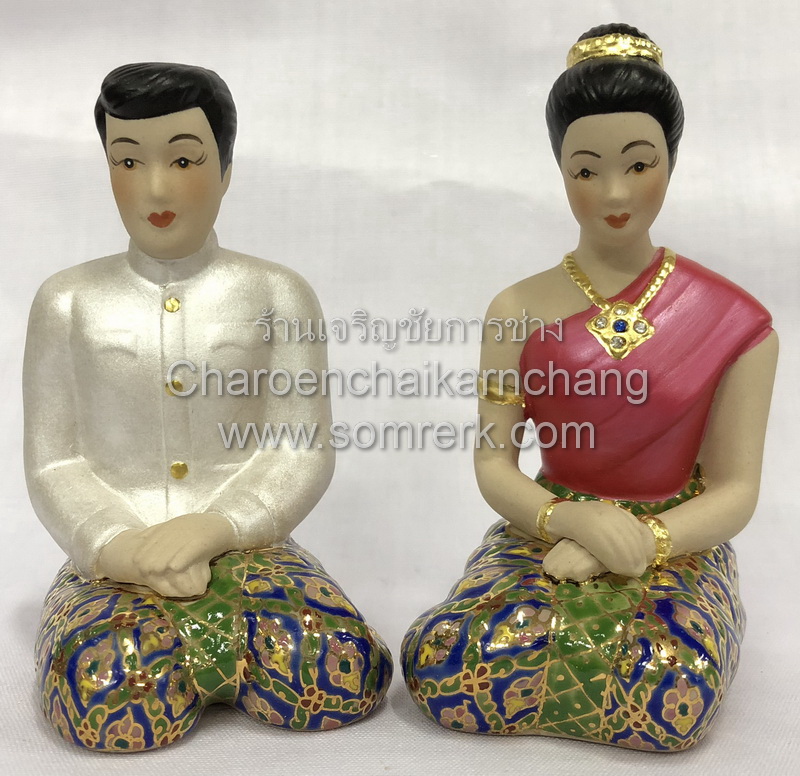 รูปที่ 6 ชาย หญิง กระเบื่้อง เบญจรงค์ ขนาด กลาง สูง 12 กว้าง 6 ลึก 7.5 ซม Code18VXJWZXDX/คู่