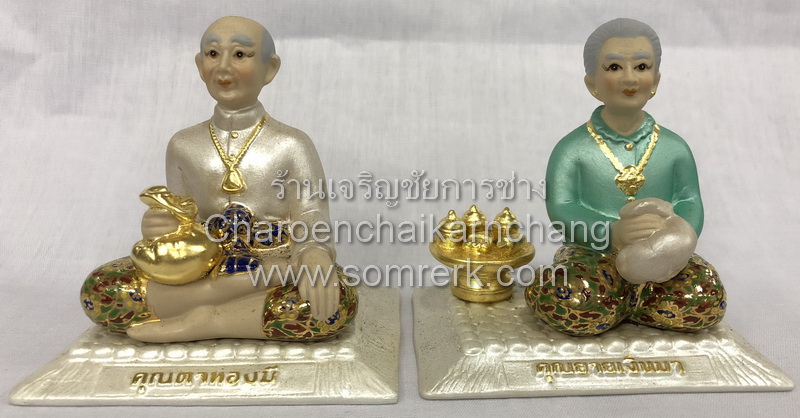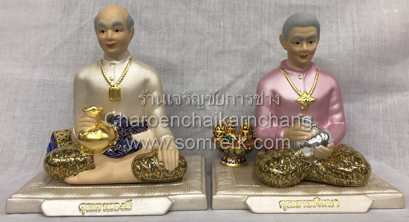 รูปที่ 1 ตายาย กระเบื้อง เบญจรงค์ ขนาด ใหญ่ สูง 23.5 กว้าง 20.5 ลึก 16 ซม Code18CXKLZXTX/คู่