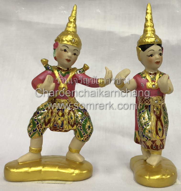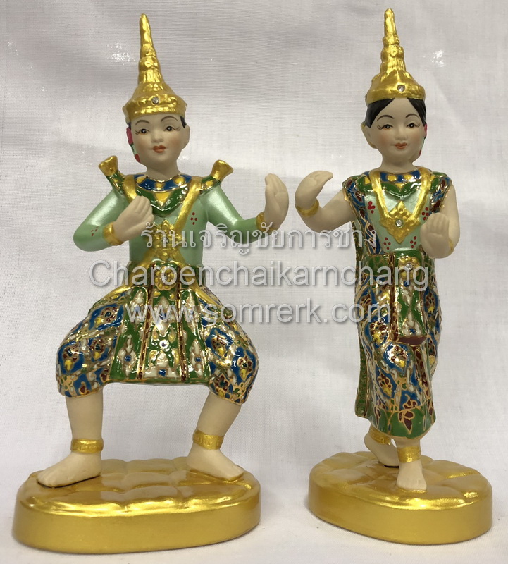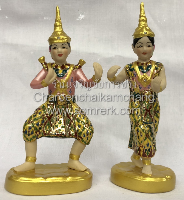 รูปที่ 9 นางรำ ชาย หญิง กระเบื้อง เบญจรงค์ ขนาด จิ๋ว ชาย สูง 12 กว้าง 6 ลึก 3 ซม หญิง สูง 12 กว้าง 4 ลึก 5 ซม Code18GXLRQDX/คู่