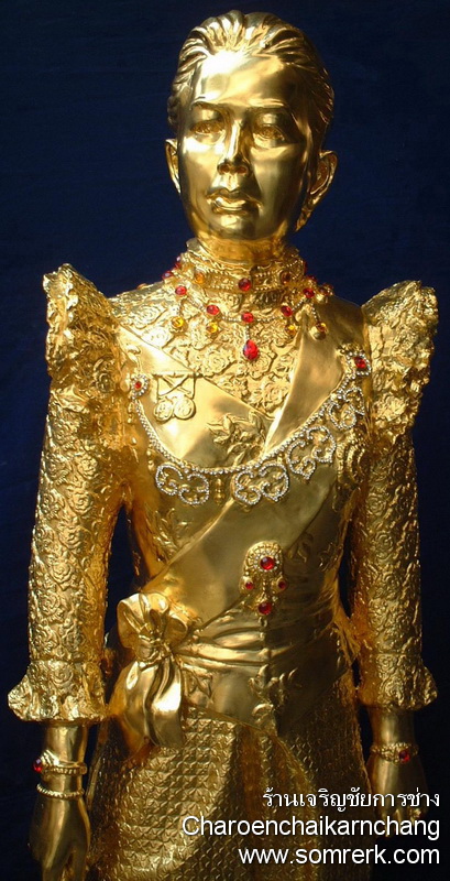 แบบที่ 1 สมเด็จพระนางเจ้าเสาวภาผ่องศรี ขนาดเท่าคนจริง ในรูปนี้ ปิดทองคำ 100% ประดับด้วยคริสตรัล สีแดงทับทิมอย่างดี ความสูงรวมฐาน 200 ซม Code16SellVBJSZZXXTX ลงทราย Code16SellCBJOZZXXTX ปิดทองคำ