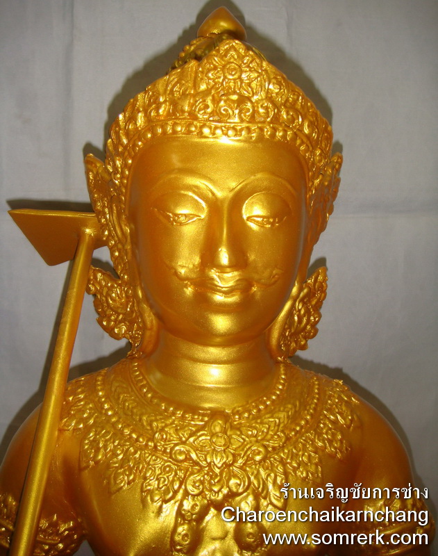 ถือจอบมือซ้าย สีดำทาทอง