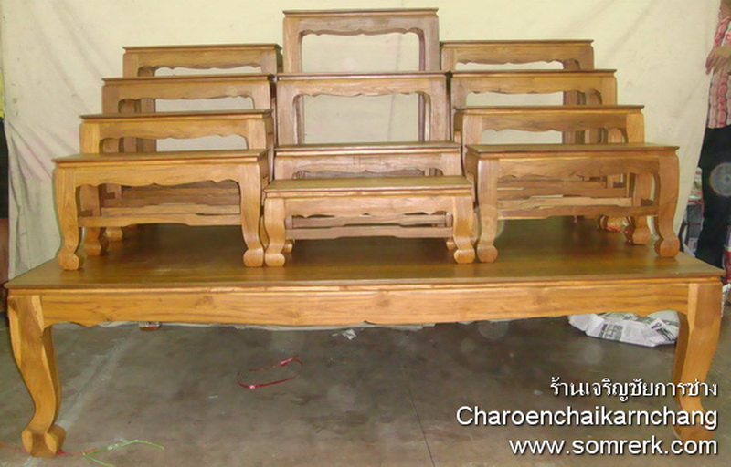 โต๊ะหมู่ หน้า 12 นิ้ว หมู่ 12 ไม้สักเรียบ