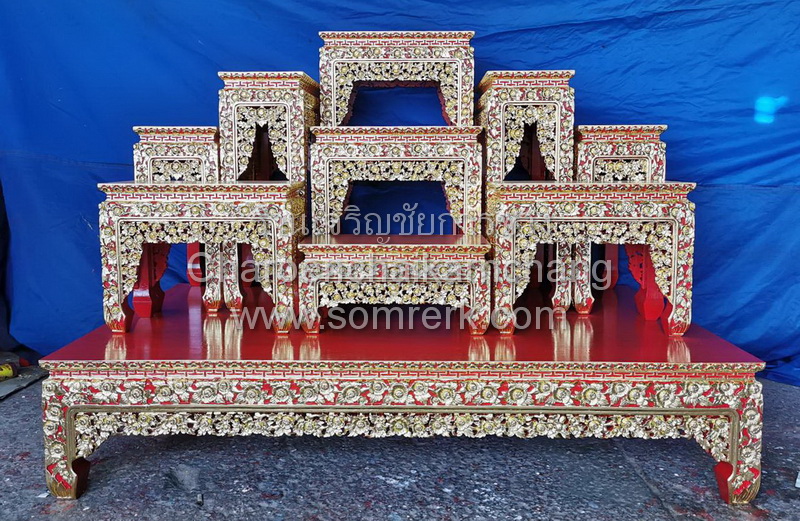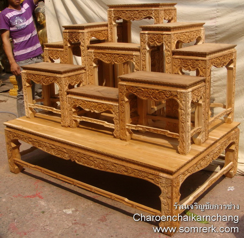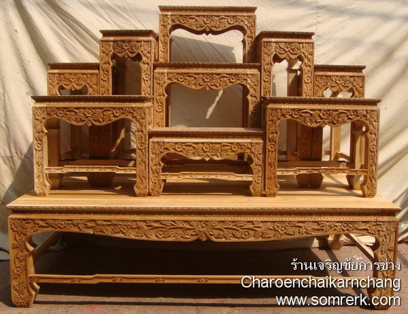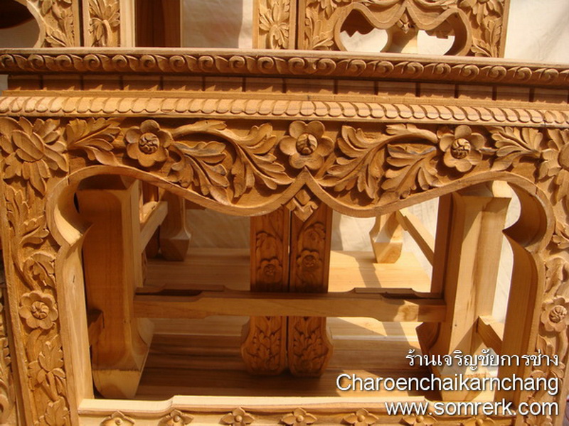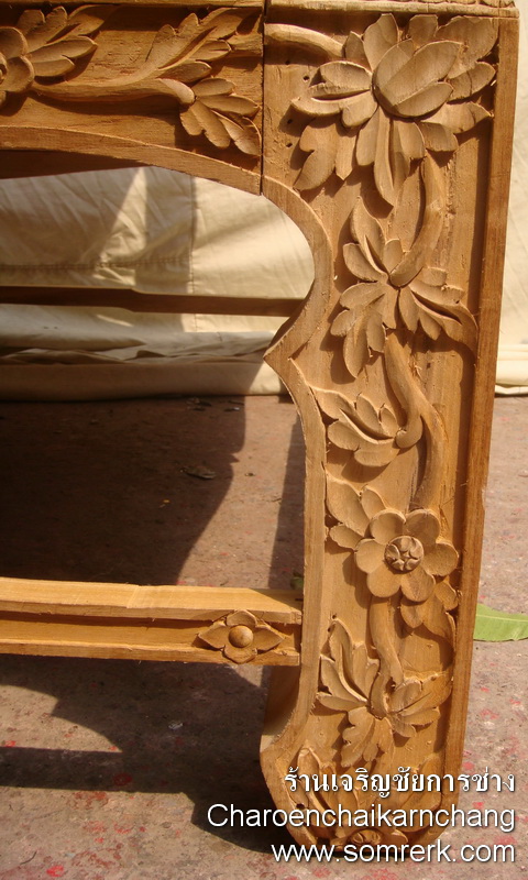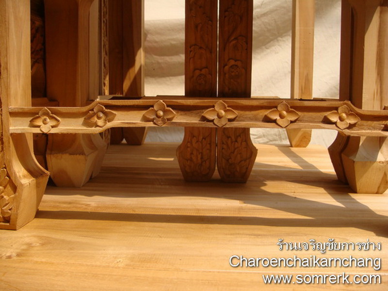 ไม้สัก ลายดอกไม้วัดสระเกศ