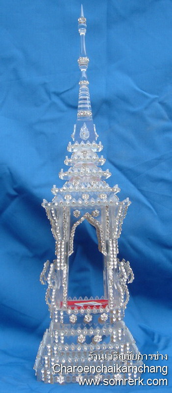 แบบที่ 8 มณฑป ฐานเหลี่ยมเล็ก ติดCrystal ภายใน 2 นิ้วครึ่ง สูง 43 ซม