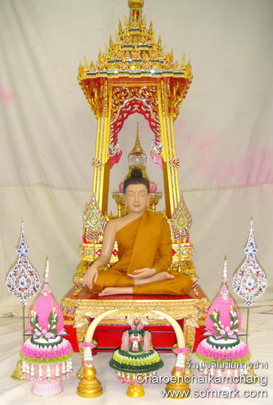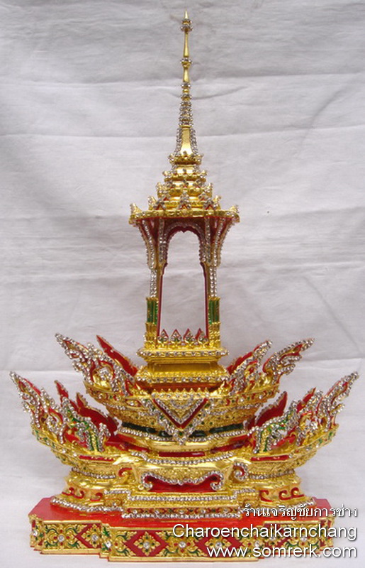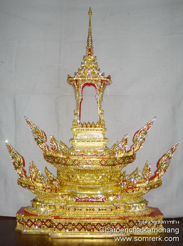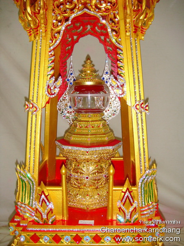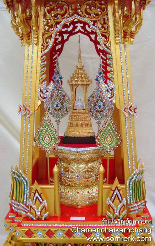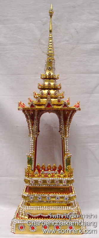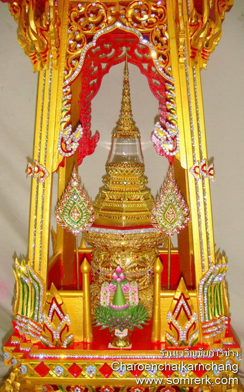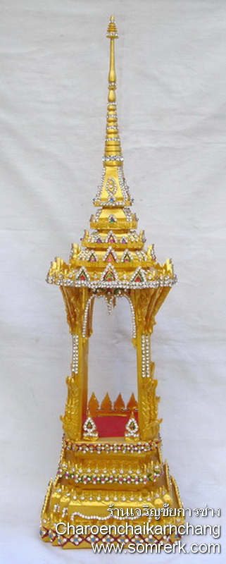 แบบที่ 4 มณฑป เรือ ภายใน 5 ซม H 44 W 28 D 11 cm ปิดทองคำ ลงยา ติดเพชร