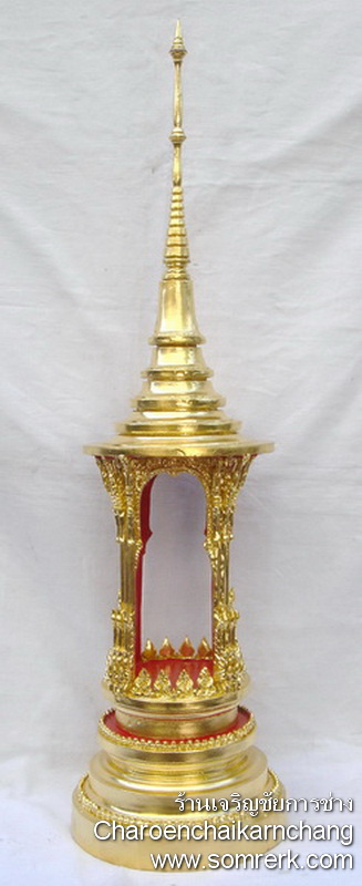 แบบที่ 2 มณฑป ไฟเบอร์ ภายใน 4 ซม ปิดทองคำ ลงยา สูง 32 ซม ฐาน 10x10 ซม
