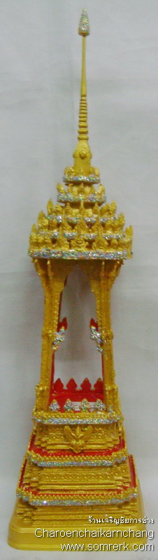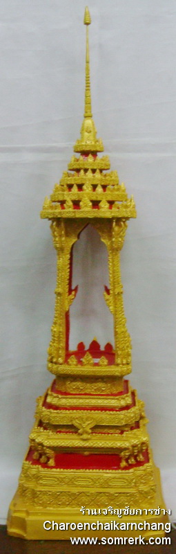 แบบที่ 1 มณฑบ เรซิน พ่นสีทอง เล็ก สูง 46 ฐาน 12x12 ภายใน 6 ซม Code12TBJQZXGX