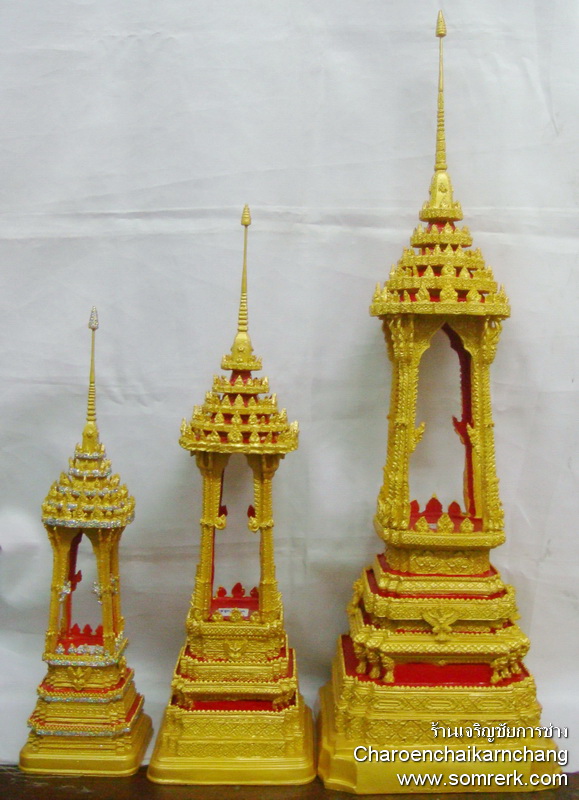 แบบที่ 4 มณฑบ เรซิน พ่นสีทอง 3 ขนาด เปรียบเทียบความสูง เล็ก กลาง ใหญ่