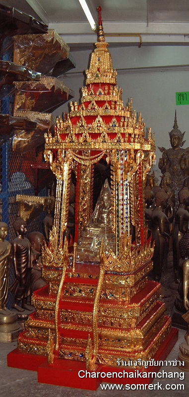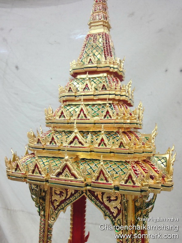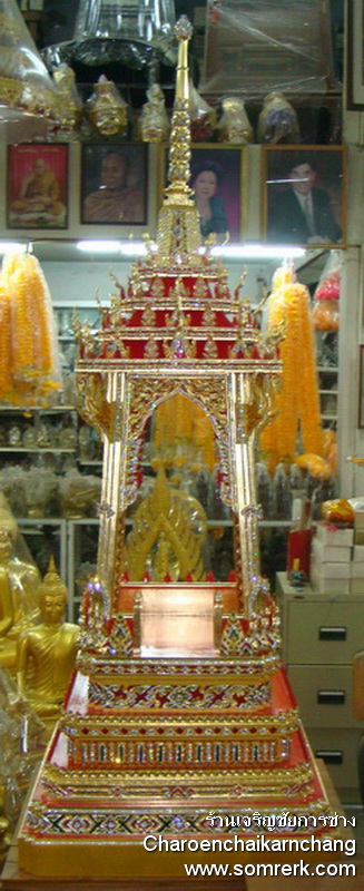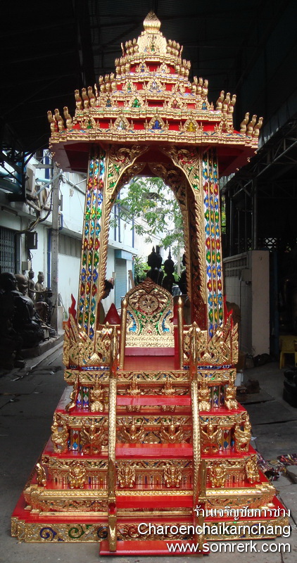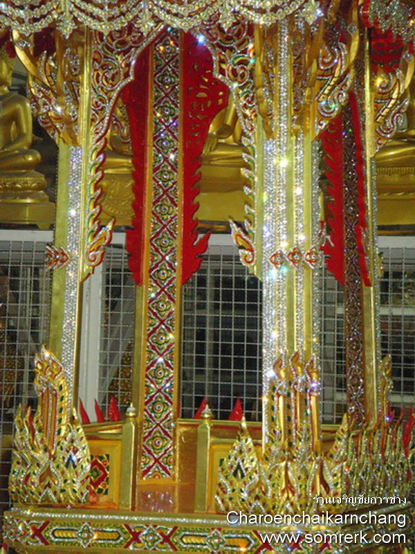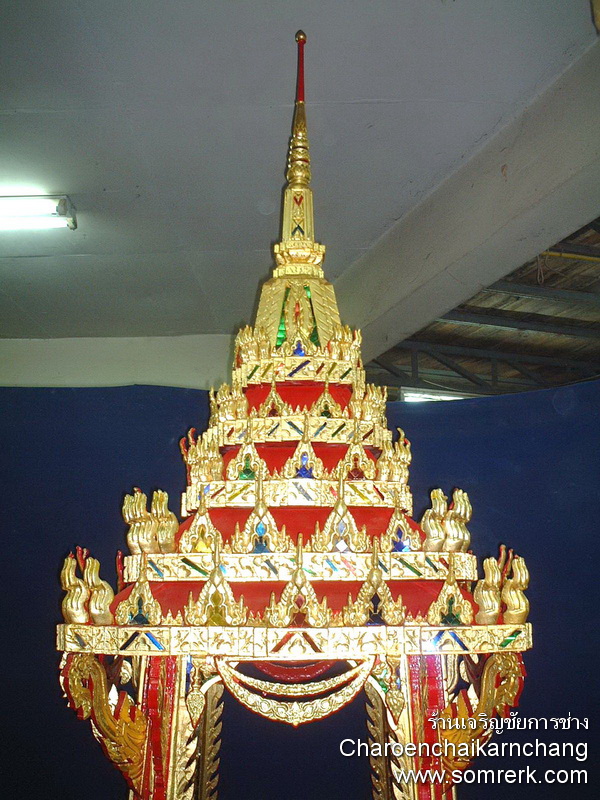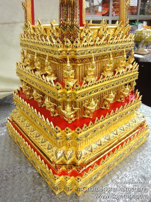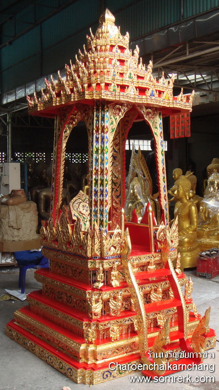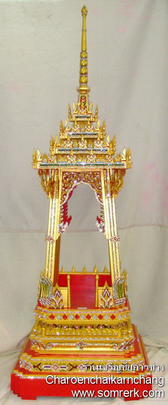 แบบที่ 33 บูษบก ภายใน 19 นิ้ว ไม้สัก ปิดทองคำ ลงยา ติดเพชร H 260 W 98 D 98 cm Code13CBJQRQZXGX