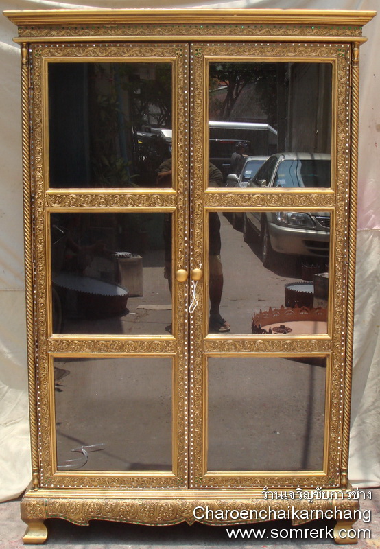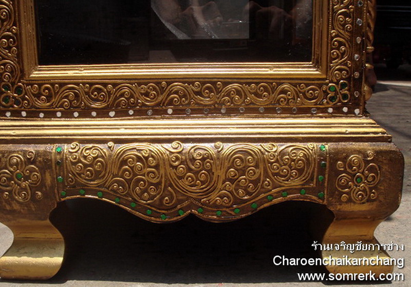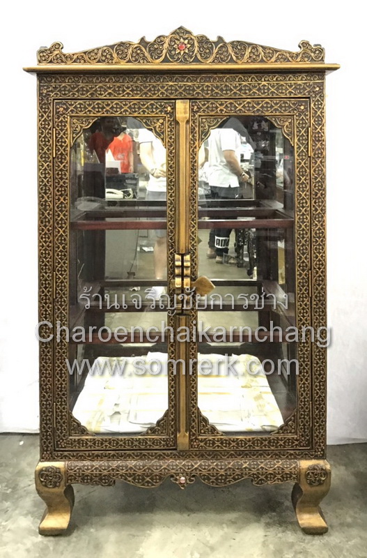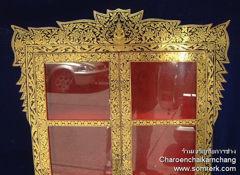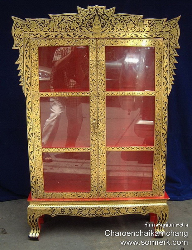 แบบที่ 3 ตู้พระไตรปิฎก ไม้สัก เขียนลายรดน้ำ ทองคำ 100% สูง 142 กว้าง 94 ลึก 32 ซม