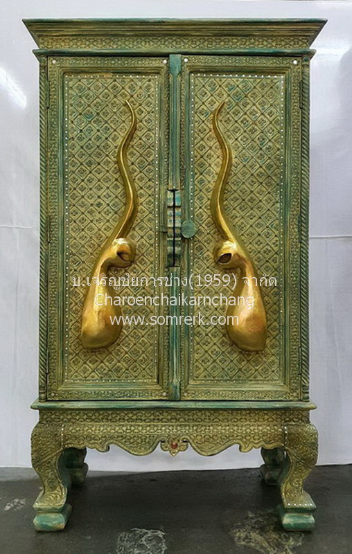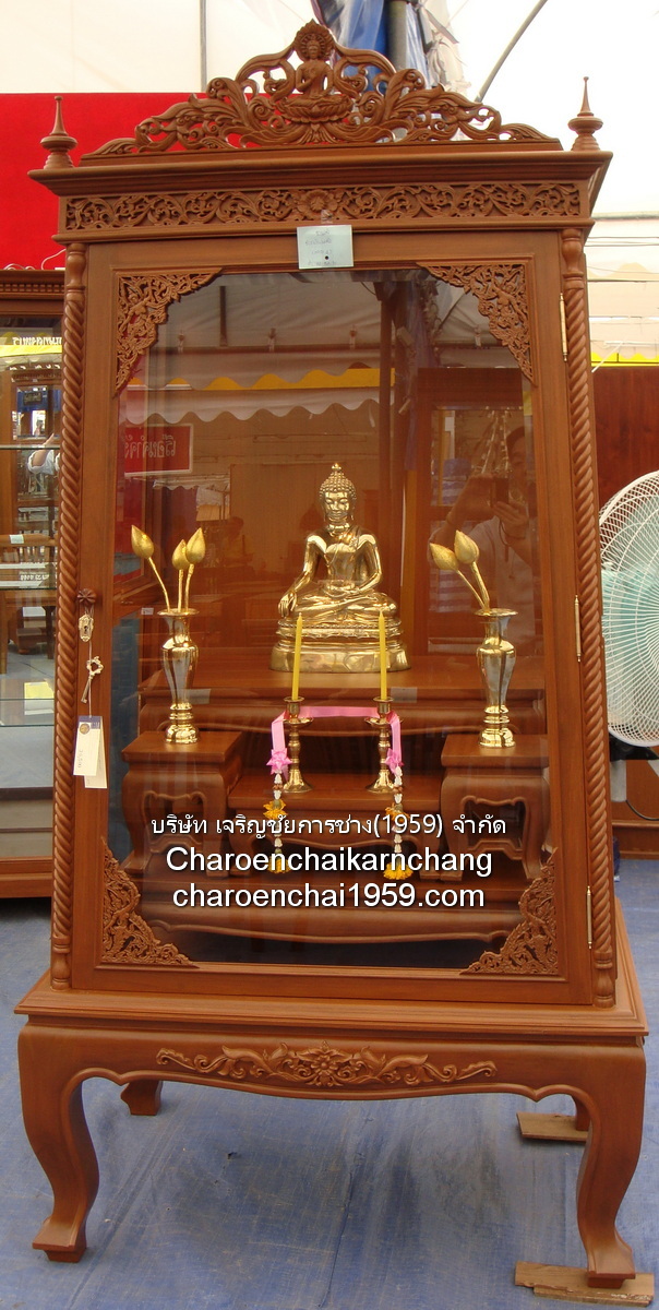 ตู้ไม้สัก มีโต๊ะหมู่ข้างใน ขัดสีเนื้อไม้