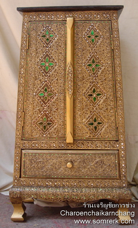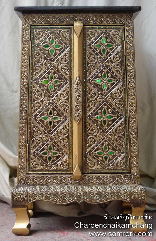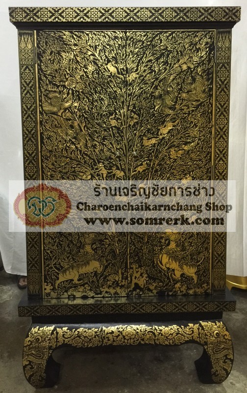 แบบที่ 3 ตู้พระไตรปิฎก ลายรดน้ำ ขาคู้ ไม้สัก Code15CDSWQZXTX