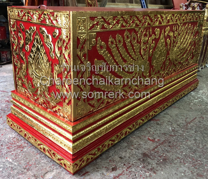 ลูกหีบ ไม้ แกะลาย นกยูง