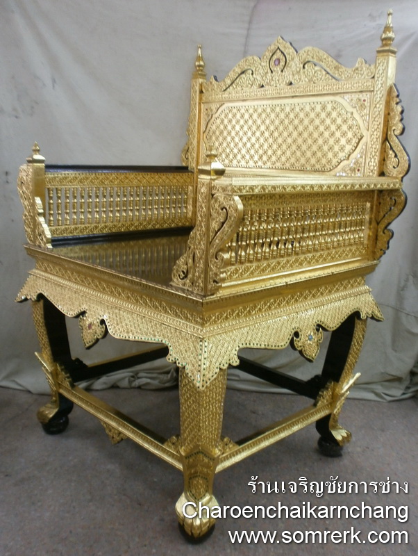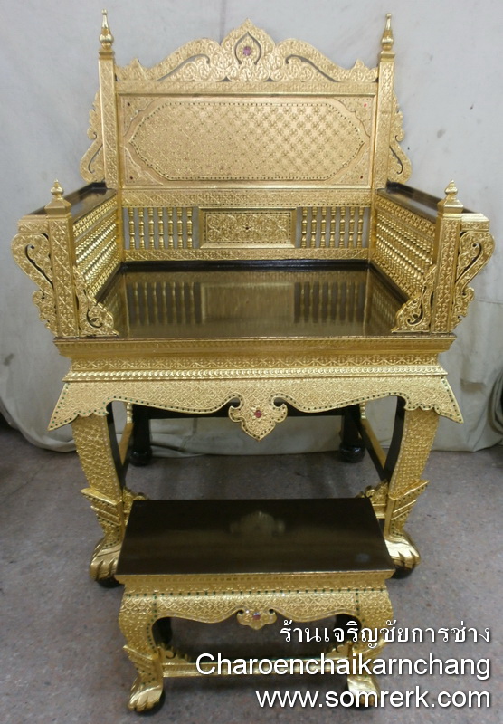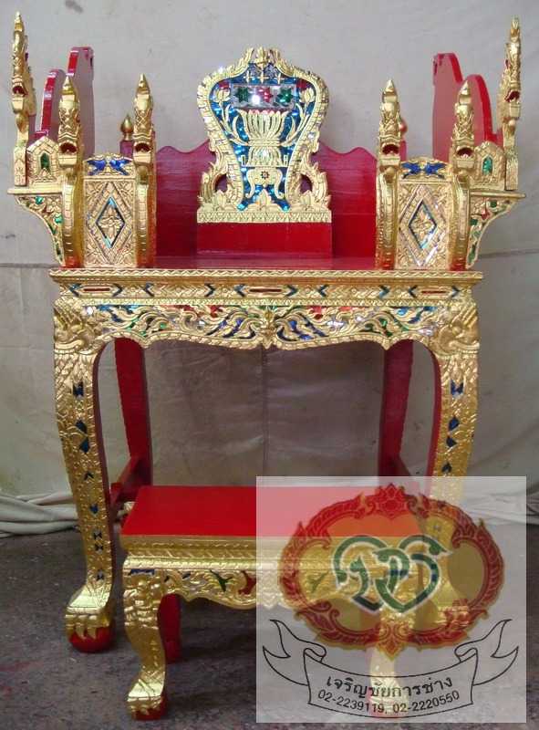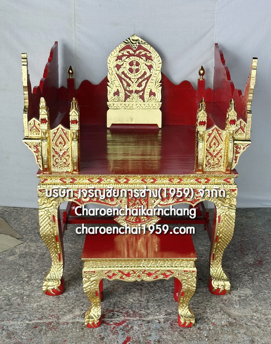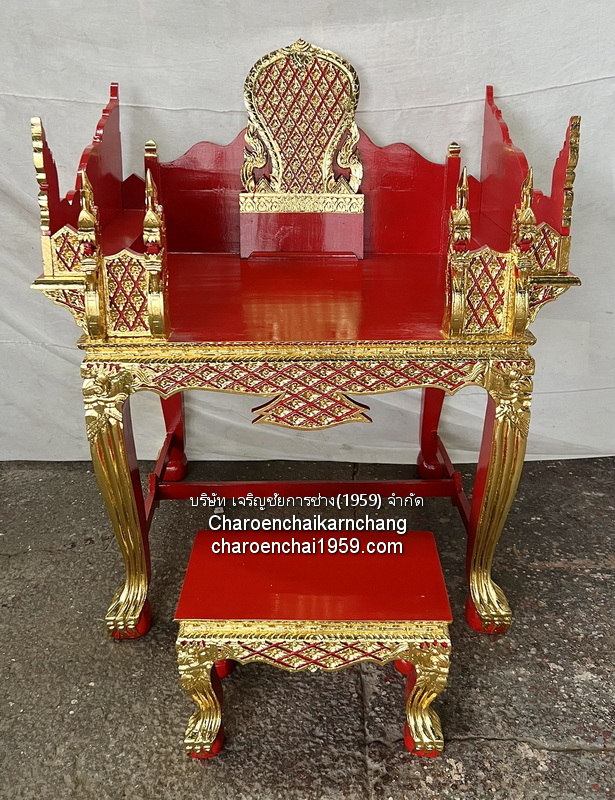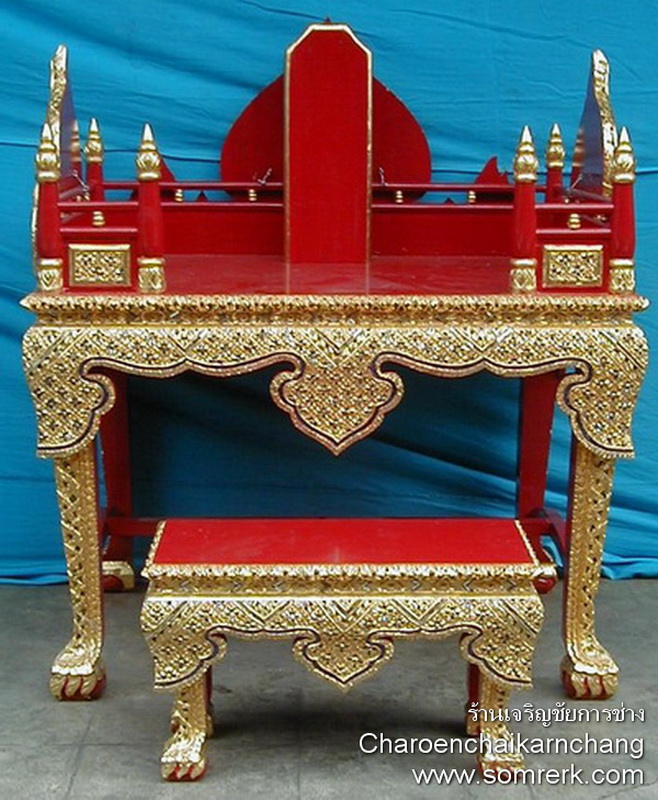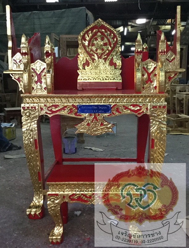แกะลายพิกุล ปิดทองเค ล่องสีแดง