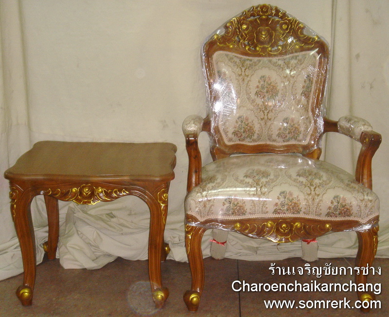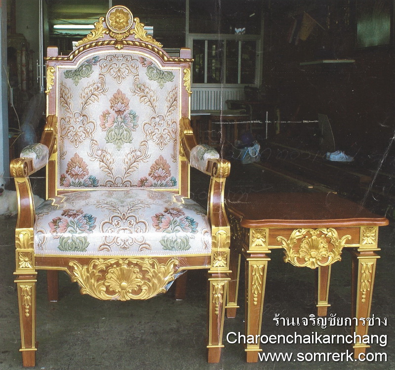 ชุดเก้าอี้หลุยส์ มีเท้าแขน + โต๊ะข้าง