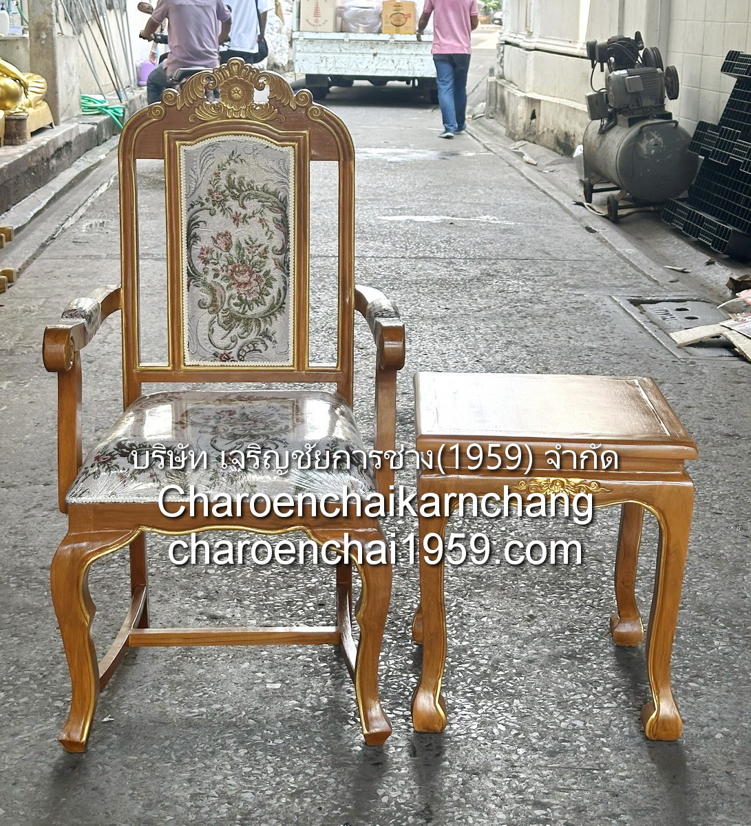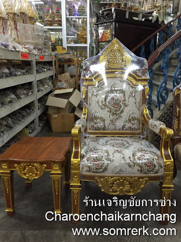 ชุดเก้าอี้สมเด็จ ลายธรรมจักร พร้อมโต๊ะข้าง